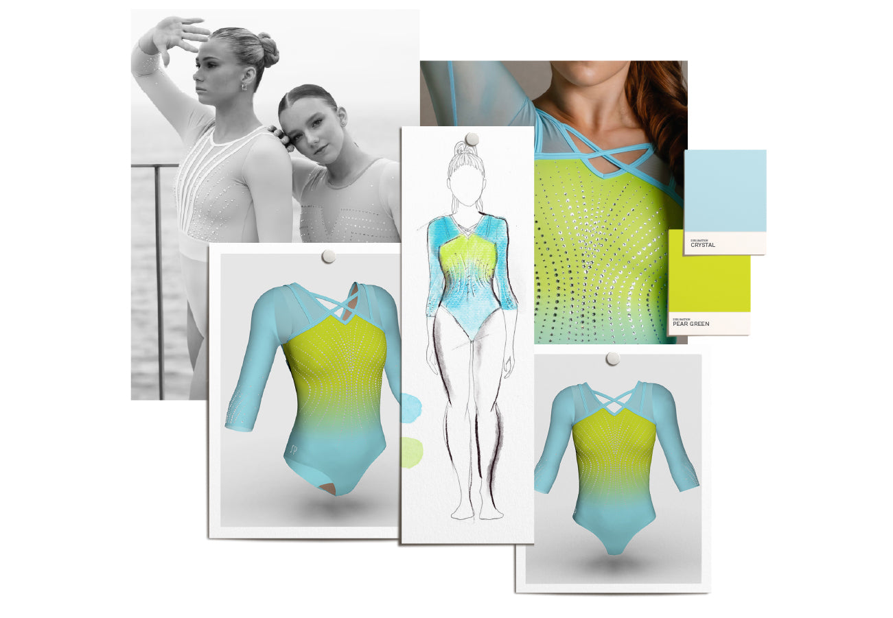 We spend months exploring trends, innovating and designing state-of the-art leotards Like No Other. Let our designs do the heavy lifting. Simply choose a catalog or club merch design you love and customize it your way, completely free of charge. Choose fabrics, colors, crystals and crystal coverage to suit your needs via StudioSP.