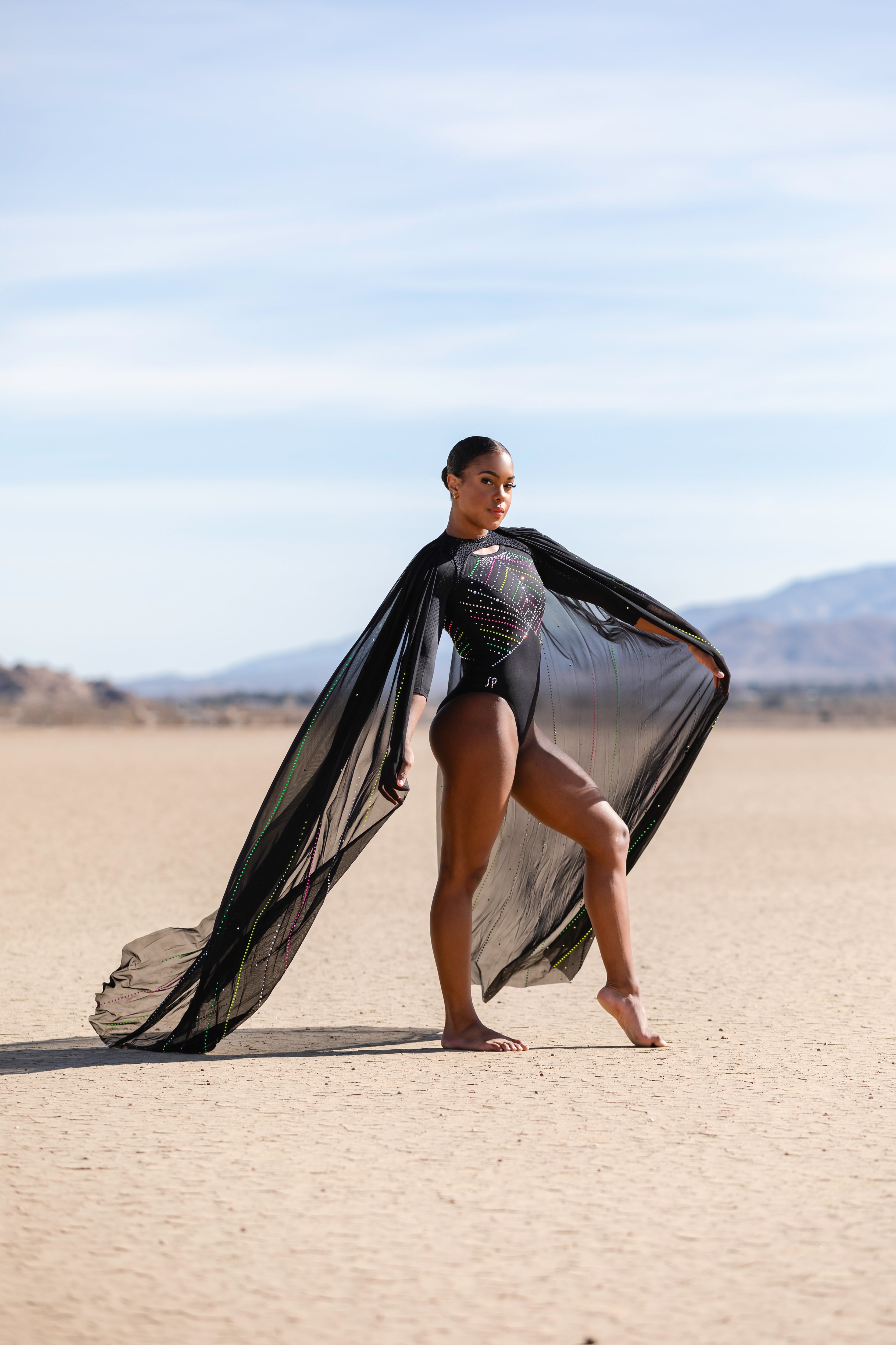 Transform on the floor with the Bronte design—full of drama. Styled in a one-of-a-kind square look neckline front and back with a singular strap. The modern engineered panelling introduces our diamond mesh, overlaid onto mystique for a subtle shine. New generation craftsmanship creates an eye-catching crystal design on the front, back and sleeves with stone colours in clear electric green, electric pink and electric yellow. Embellished with crystals by Swarovski®.