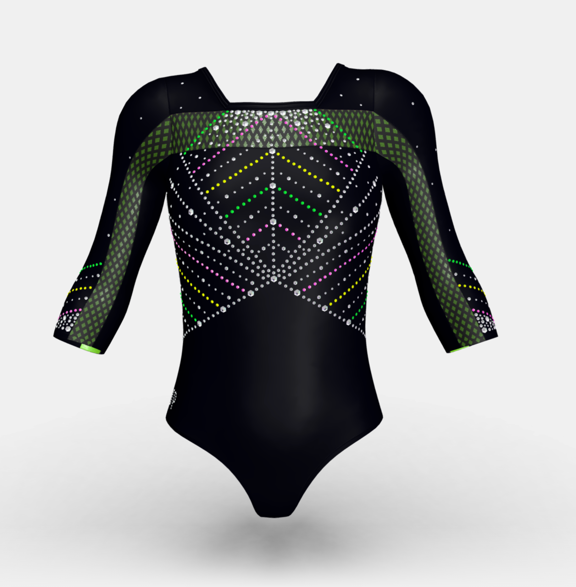 Change the fabrics, colours and crystals of this leotard using StudioSP, our 3D product designer.
