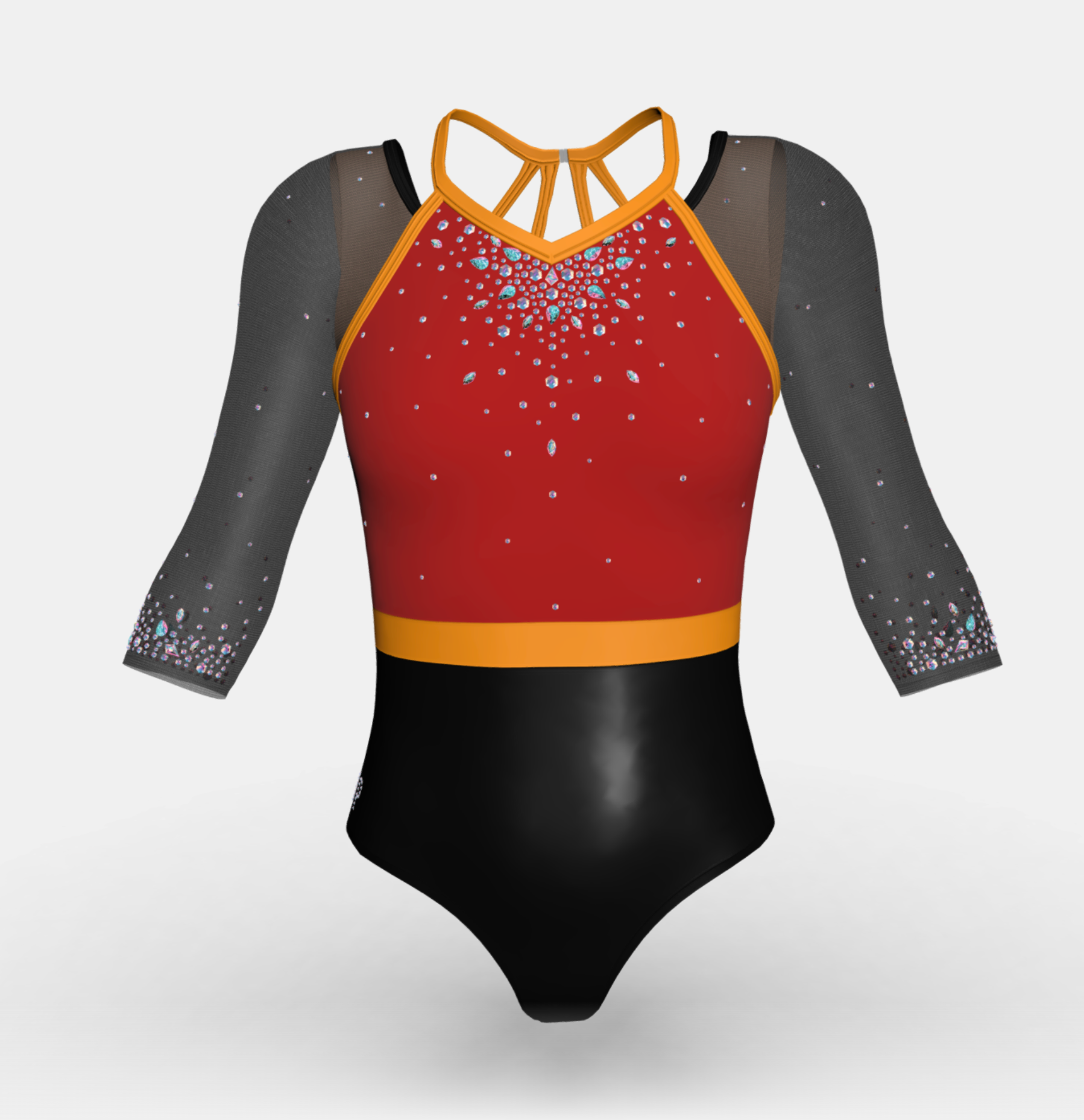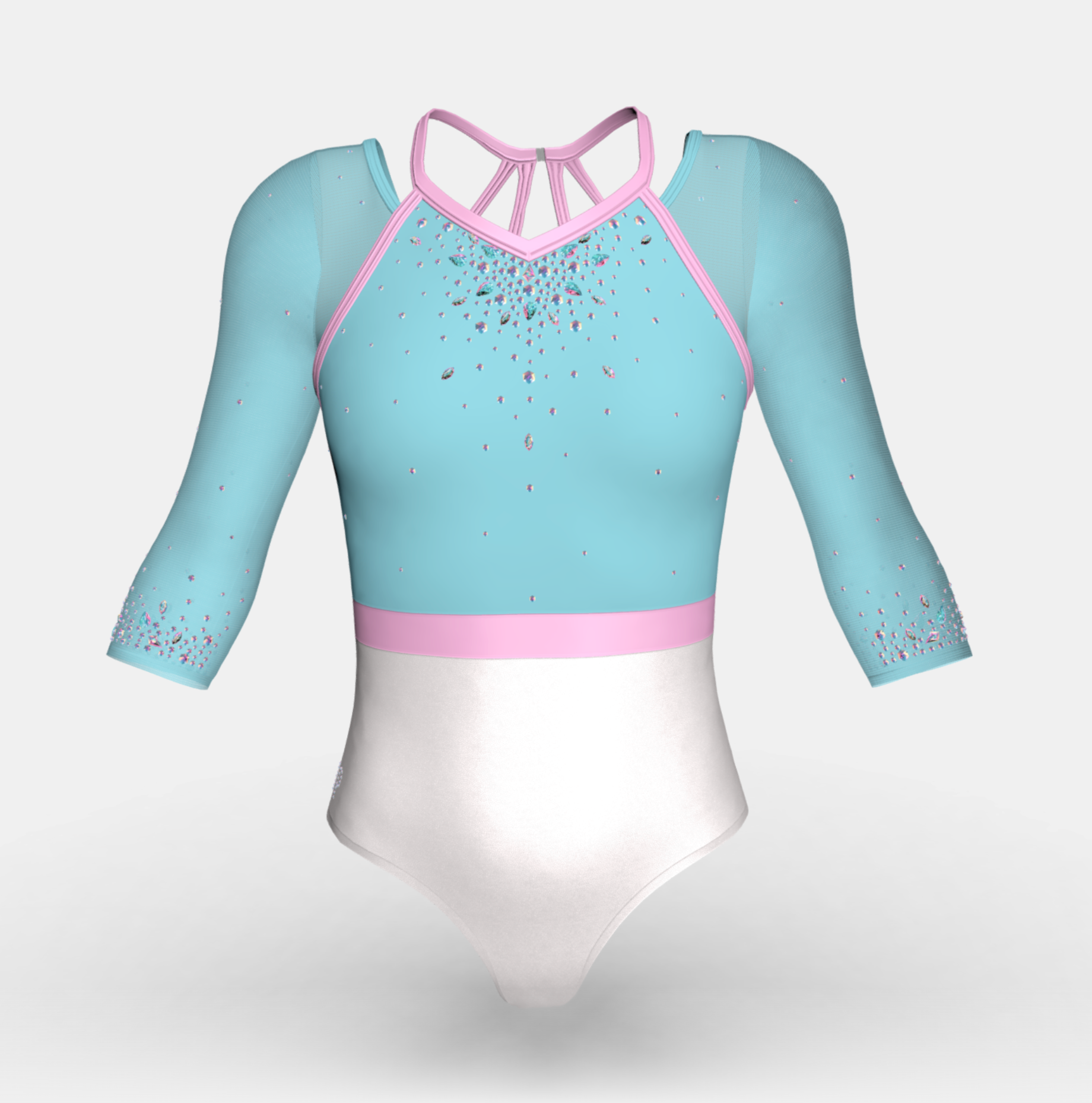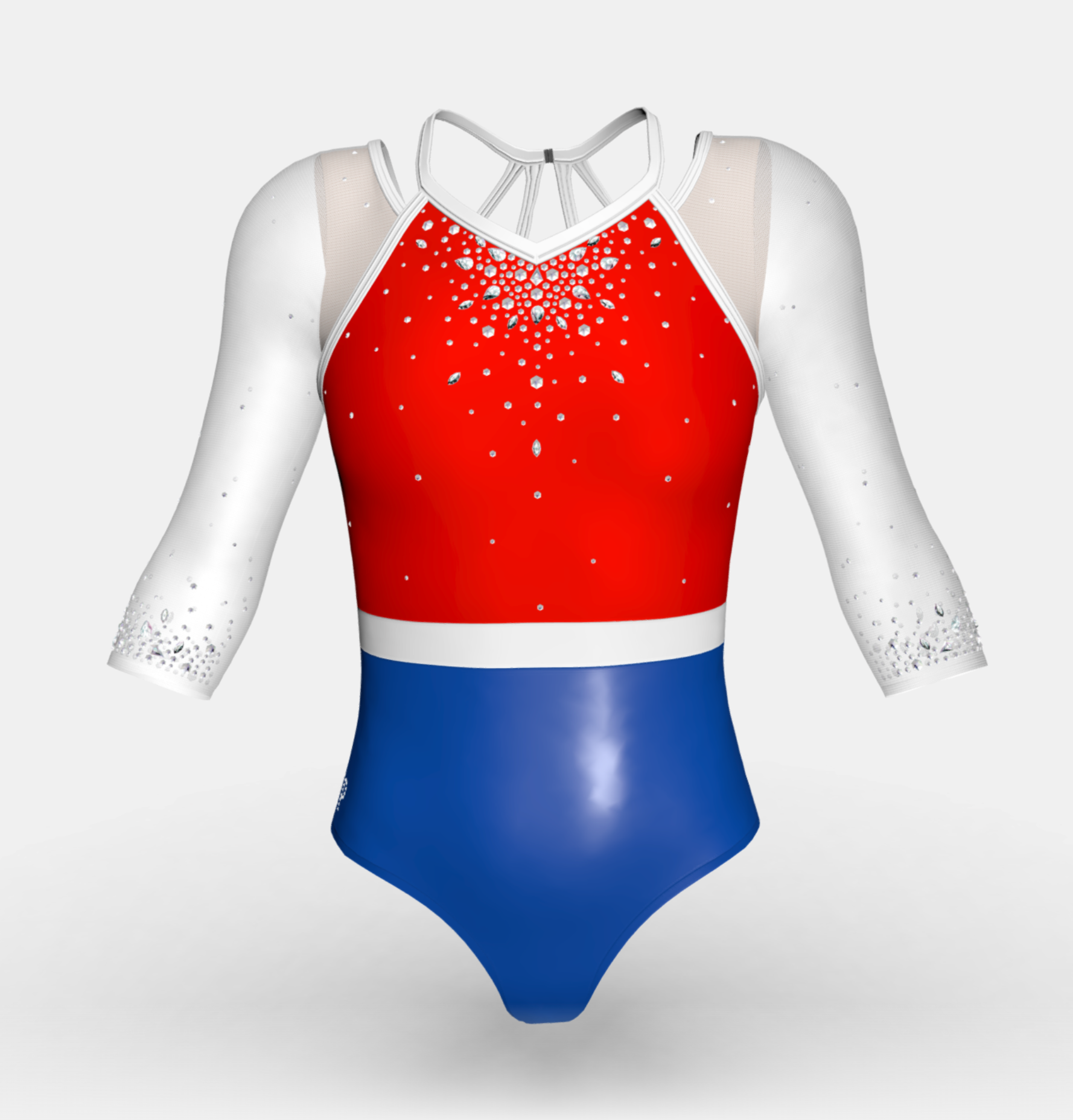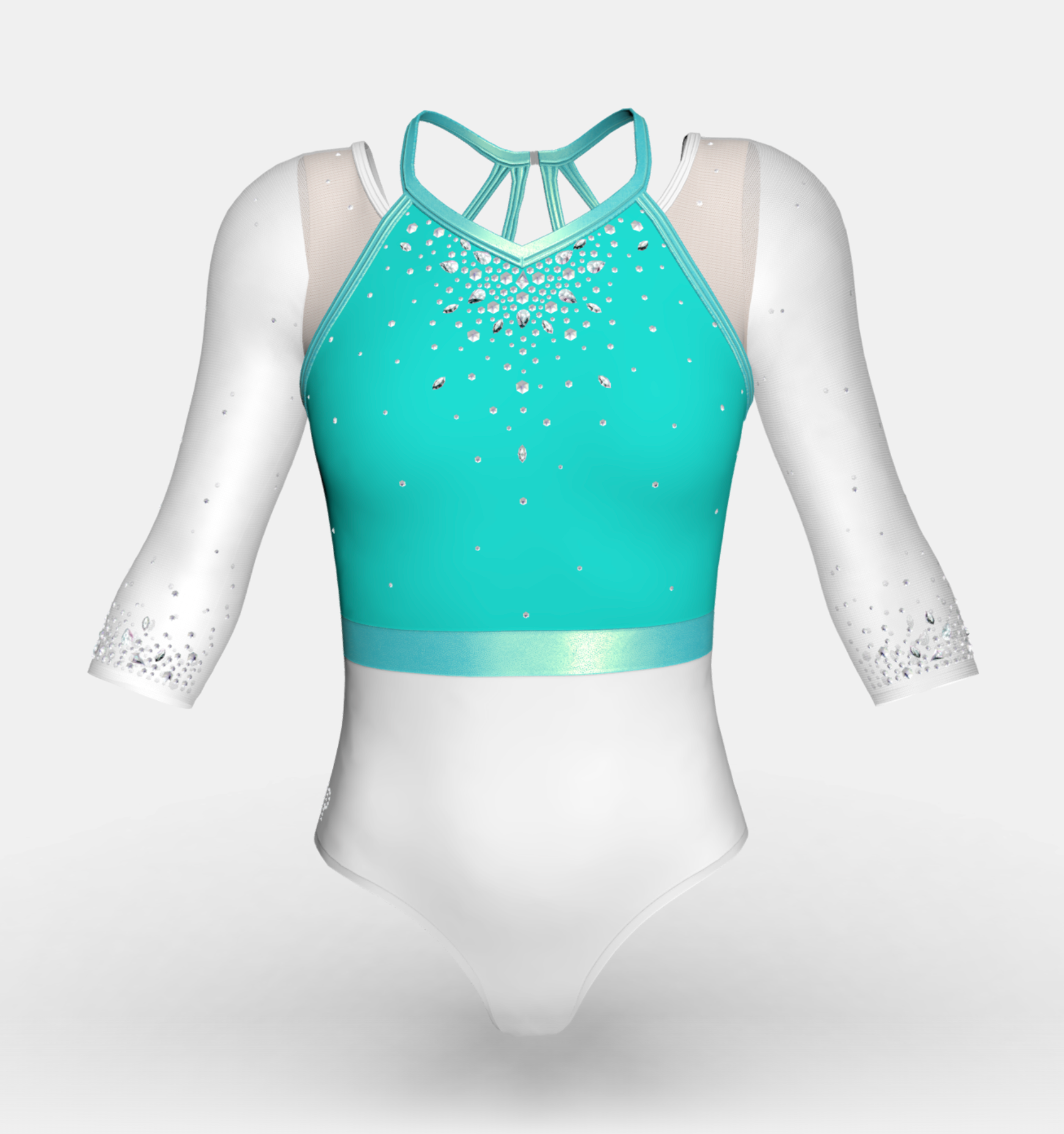 Change the fabrics, colours and crystals of this leotard using StudioSP, our 3D product designer.