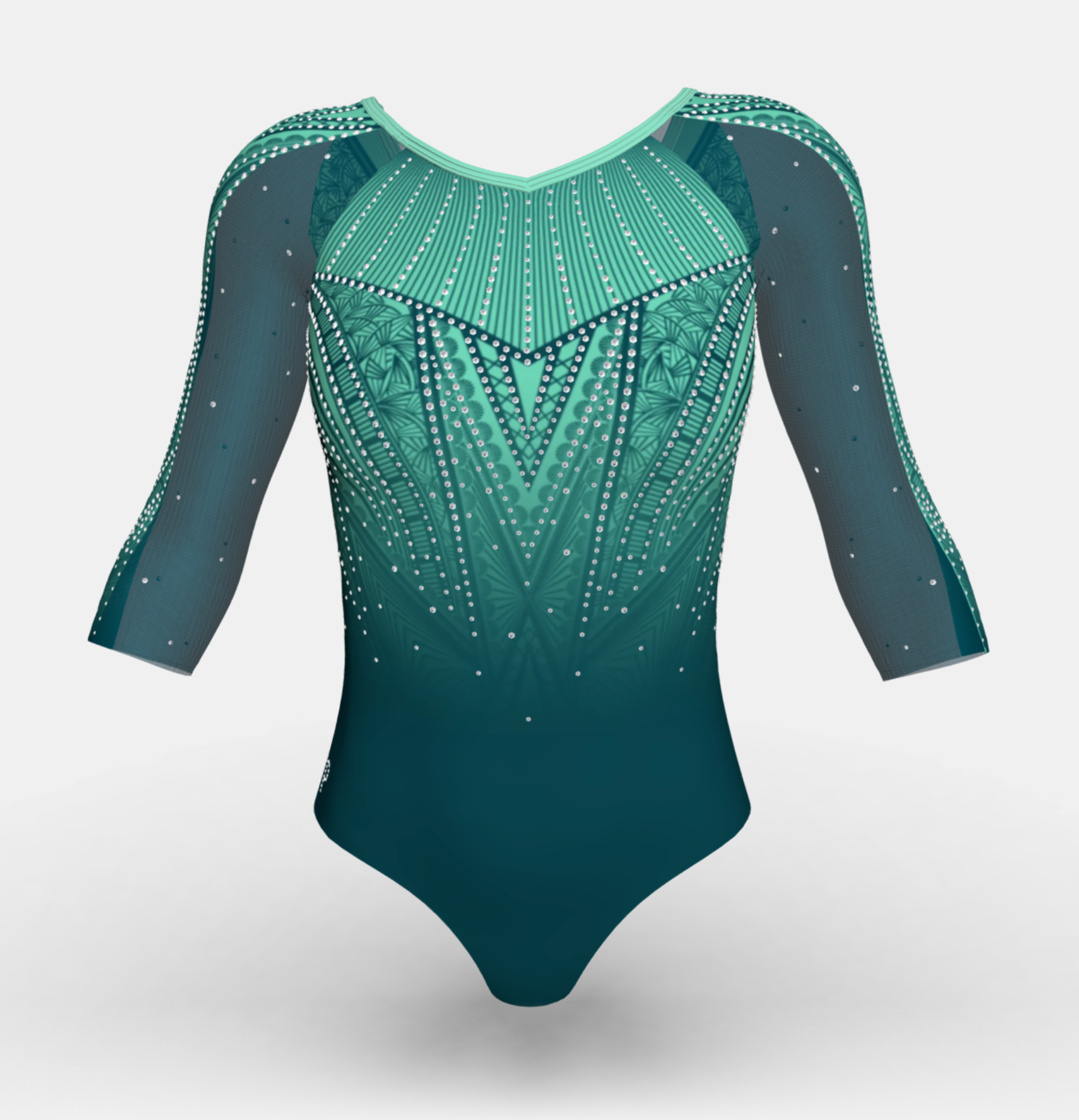 Change the fabrics, colours and crystals of this leotard using StudioSP, our 3D product designer.