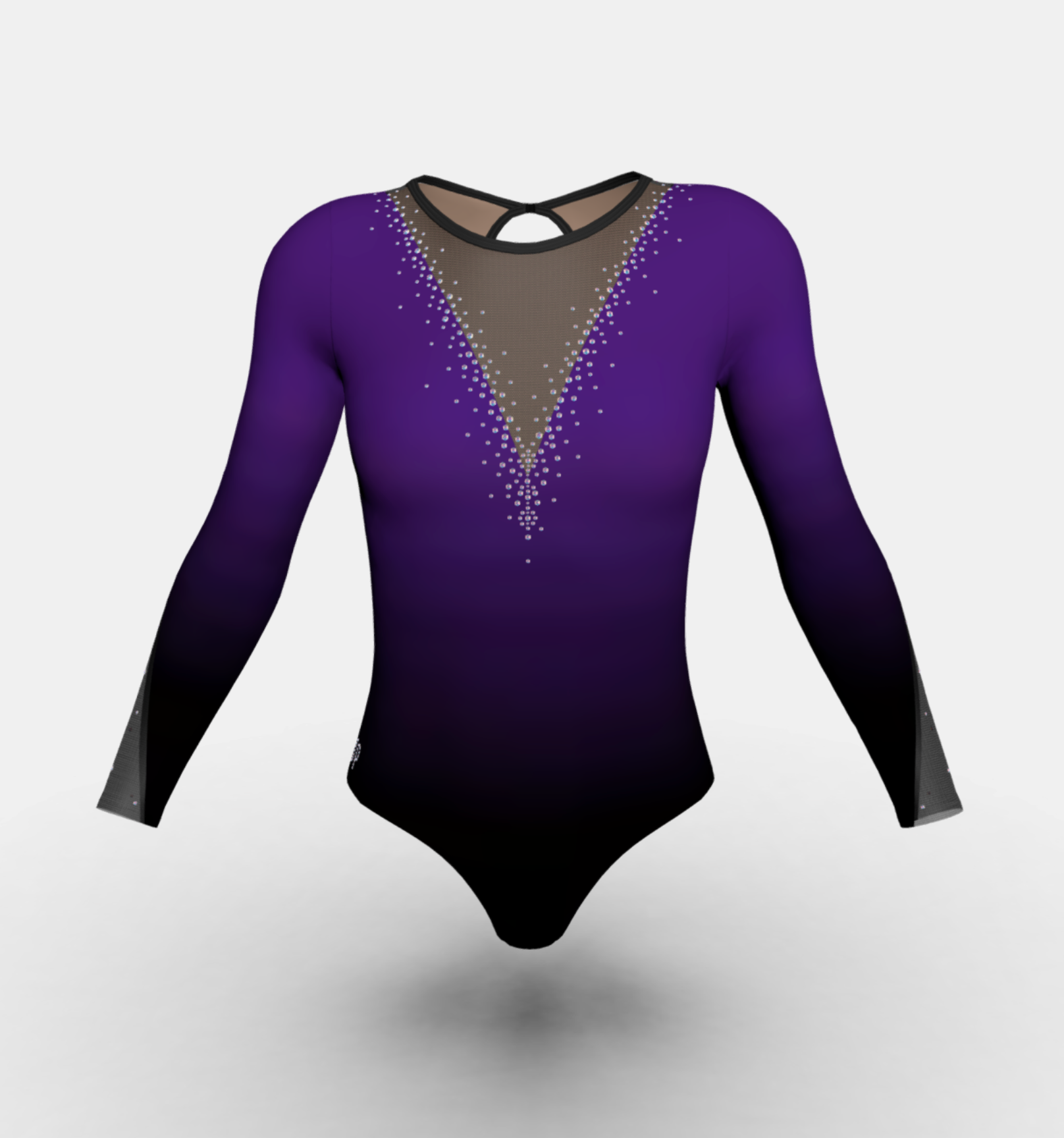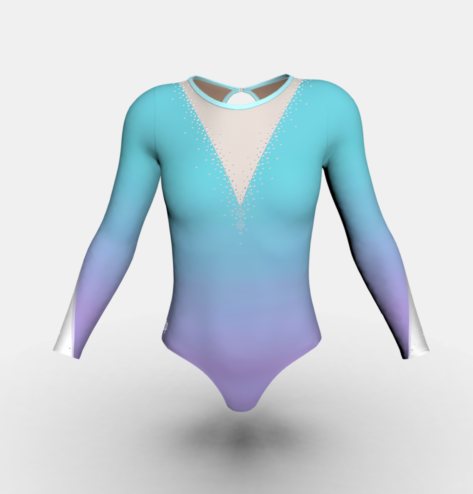 Stay styled in simple refinement with the Etta design. Fashioned in a high scooped neckline with clasp & keyhole at the back, a modest sublimated design flows through the body with a classic ombre effect. Deep V-shaped mesh panels feature through the front & back to create an elegant shape with mesh panel inserts added through the sleeves for breathability during competitions. Delicate crystals line the edges of the neckline in a feminine scatter and are sprinkled across the mesh panels for optimum sparkle. Cut from a combination of our signature printed stretch fabricated body, sleeves which have a matt finish & soft hand feel, mesh sleeve inserts & panels and mystique binding. The front of this leotard is fully lined for complete athlete comfort with all mesh body panels fully lined with skin lining for zero transparency.
