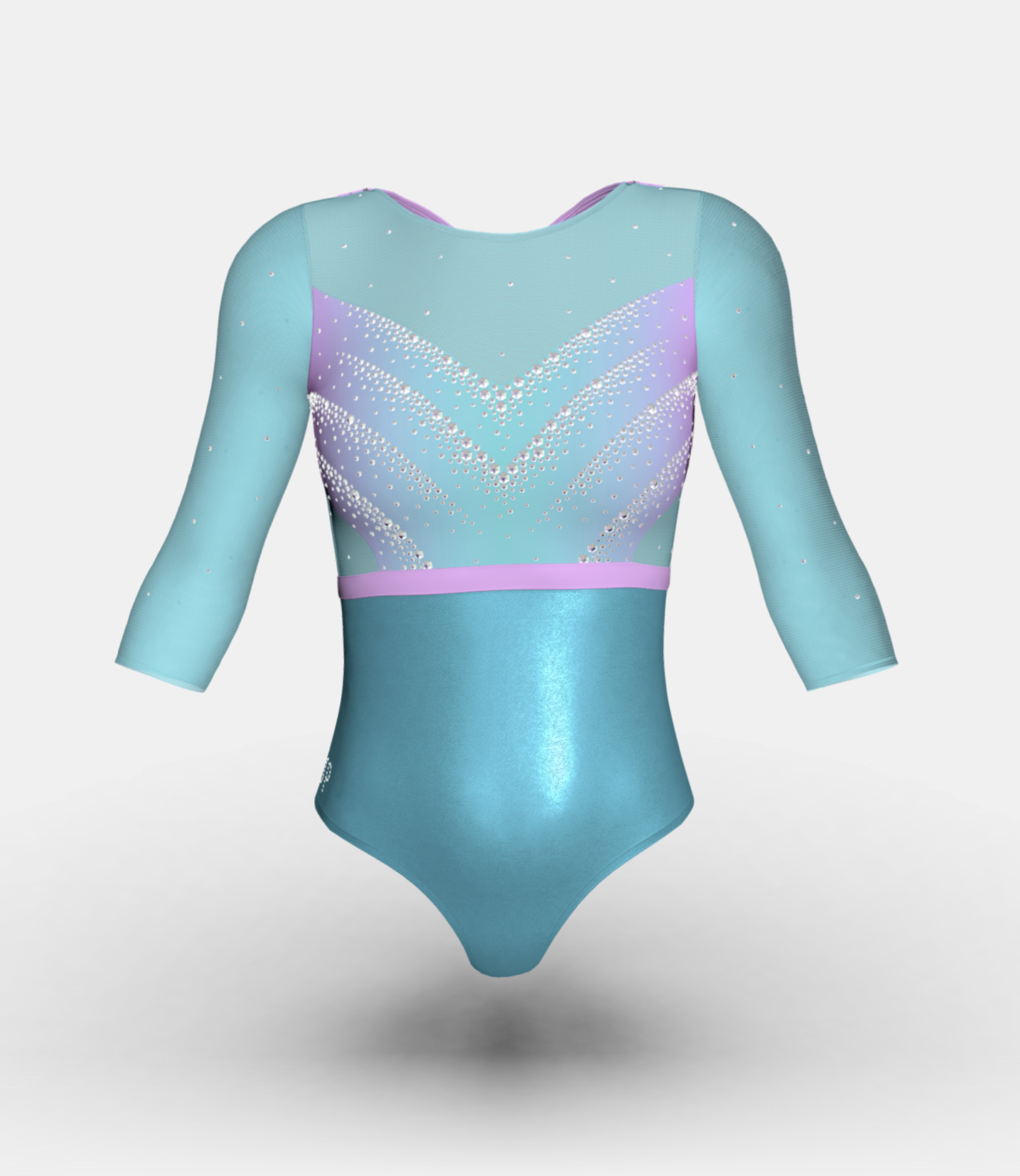 The Freya design is a style statement—featuring a scooped neckline front & back with hidden binding, giving the effect of crystals disappearing into the neckline. The engineered two-colour ombre effect flows through the front bodice, while the rich crystal detailing on the front & back shimmer with every movement. The side body features mesh panels with a waist accentuating contrast colour belt & fine criss-cross straps emblazoning the back. Cut from a combination of our signature printed stretch fabrication upper that has a matt finish & soft hand feel, plus matt lycra lower with mesh sleeves. The front of this leotard is fully lined for complete athlete comfort, with all mesh body panels fully lined with skin lining for zero transparency.