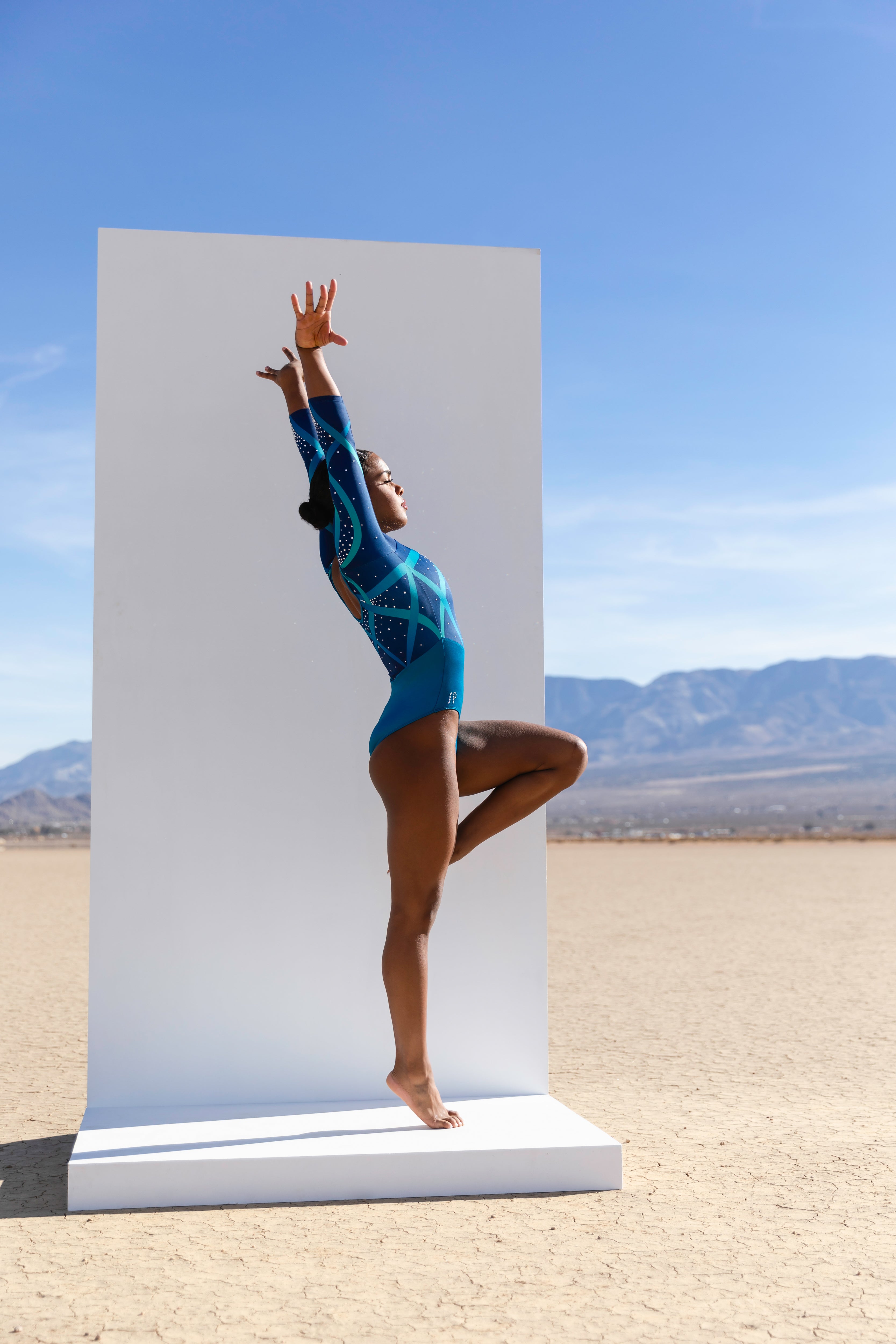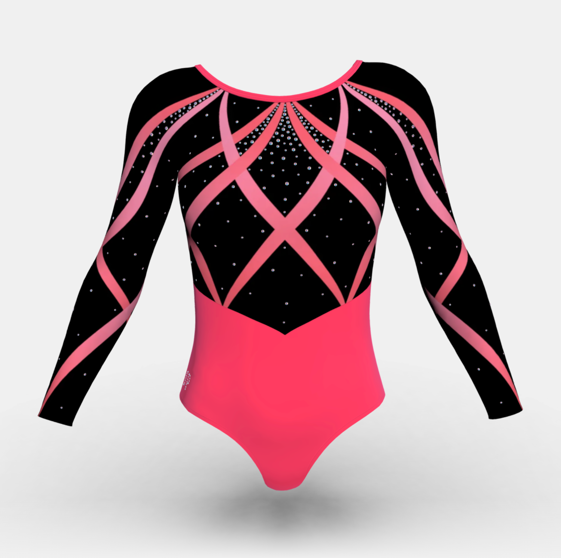 A playful look, inspired by rhythmic gymnastics – the Kenzi design dares to be different. Styled in a round neckline at the front with a V-shape at the back. The upper bodice and sleeves are sublimated with an ombre ribbon-like look.