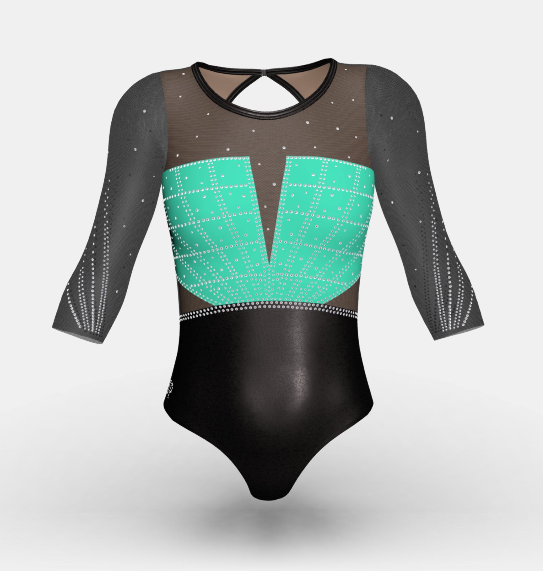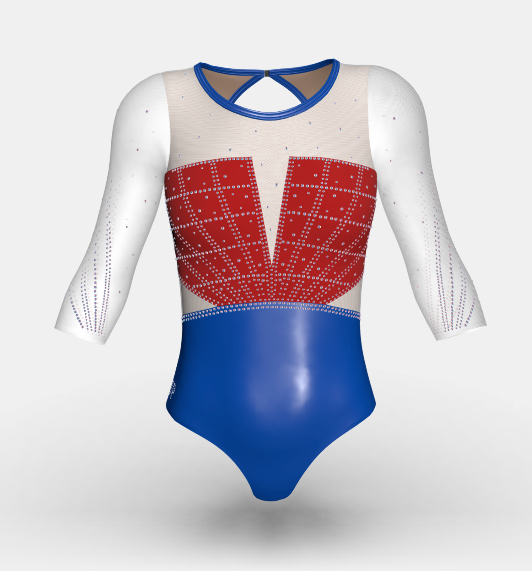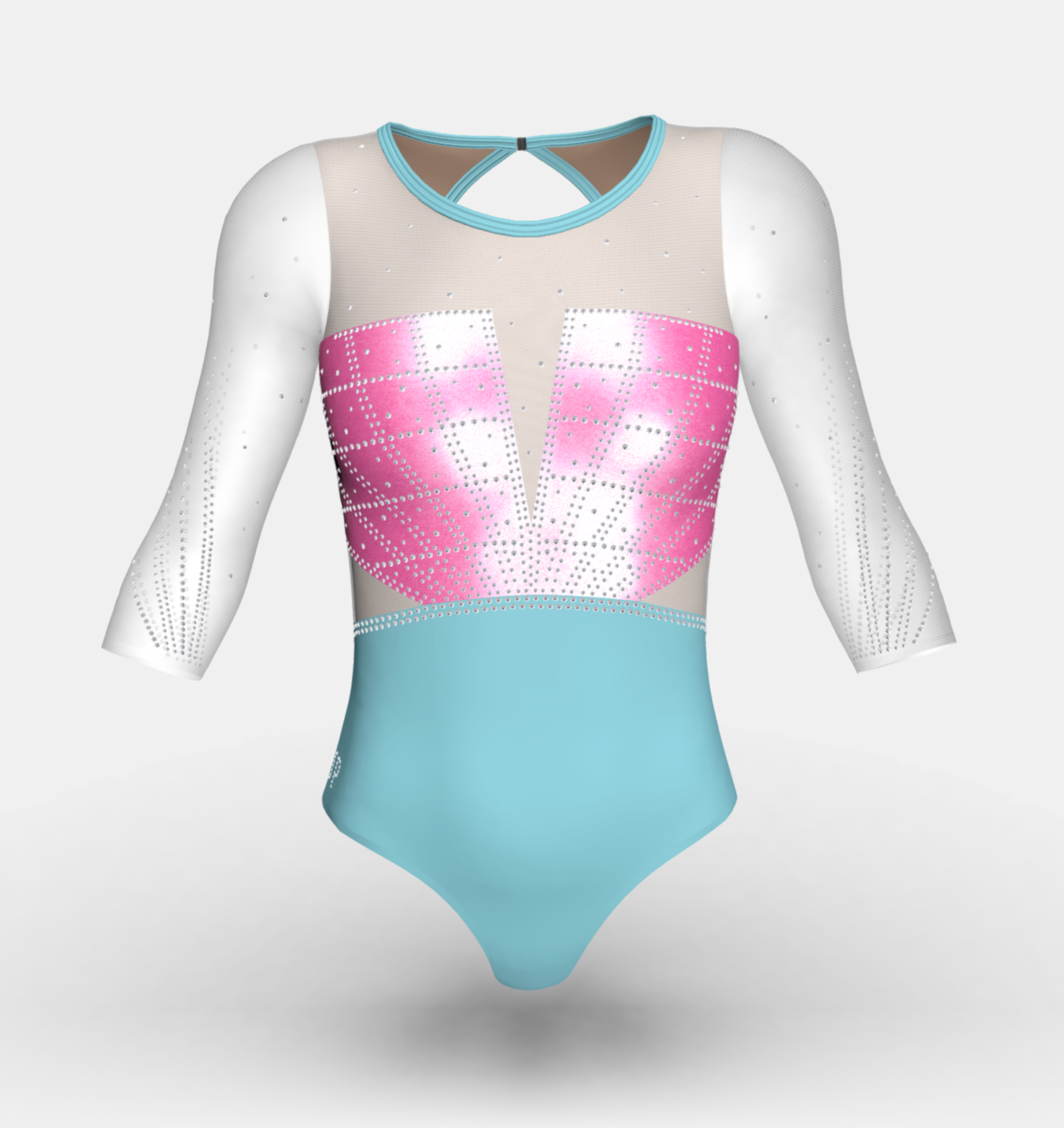 Change the fabrics, colours and crystals of this leotard using StudioSP, our 3D product designer.