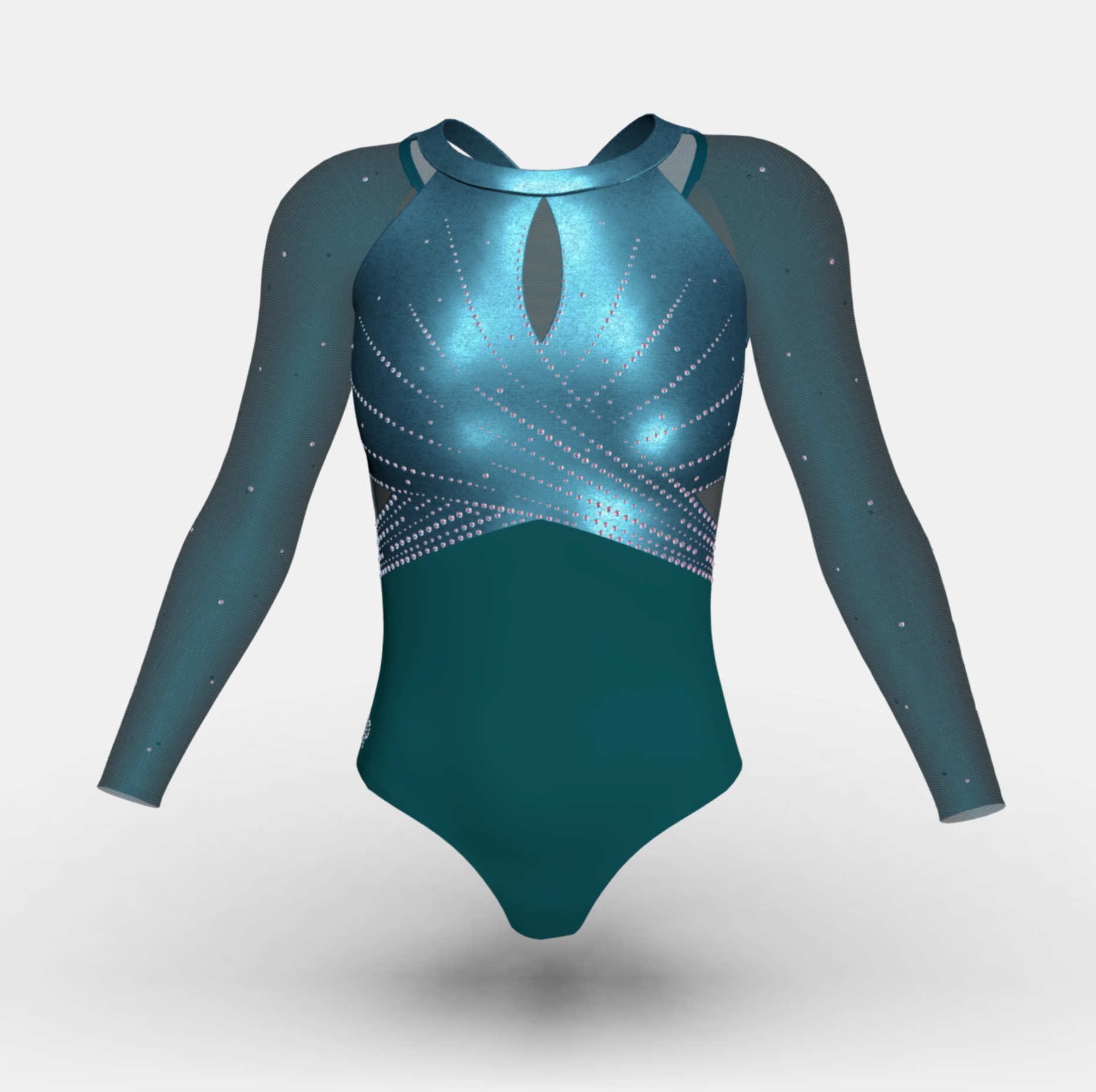Change the fabrics, colours and crystals of this leotard using StudioSP, our 3D product designer.