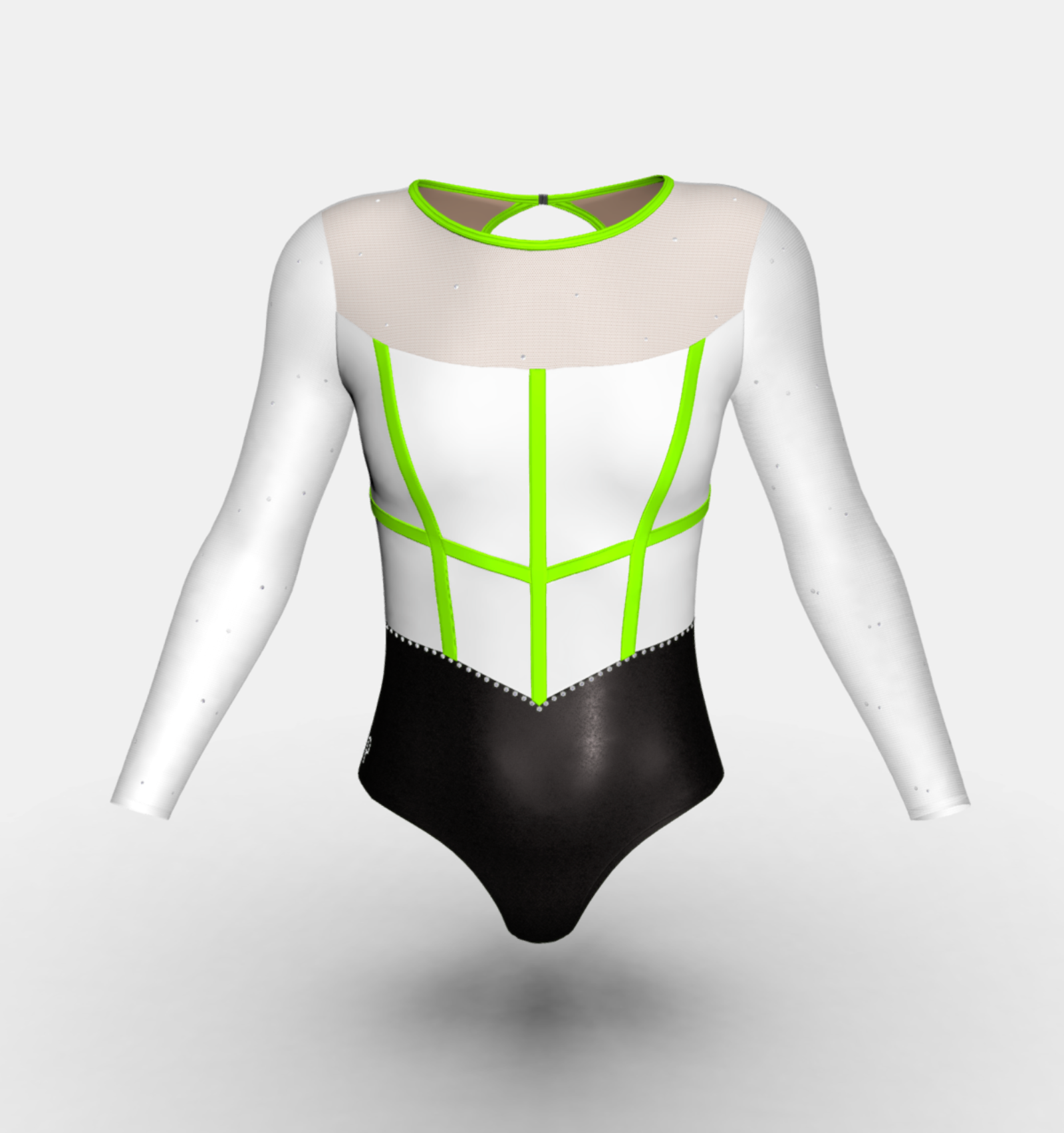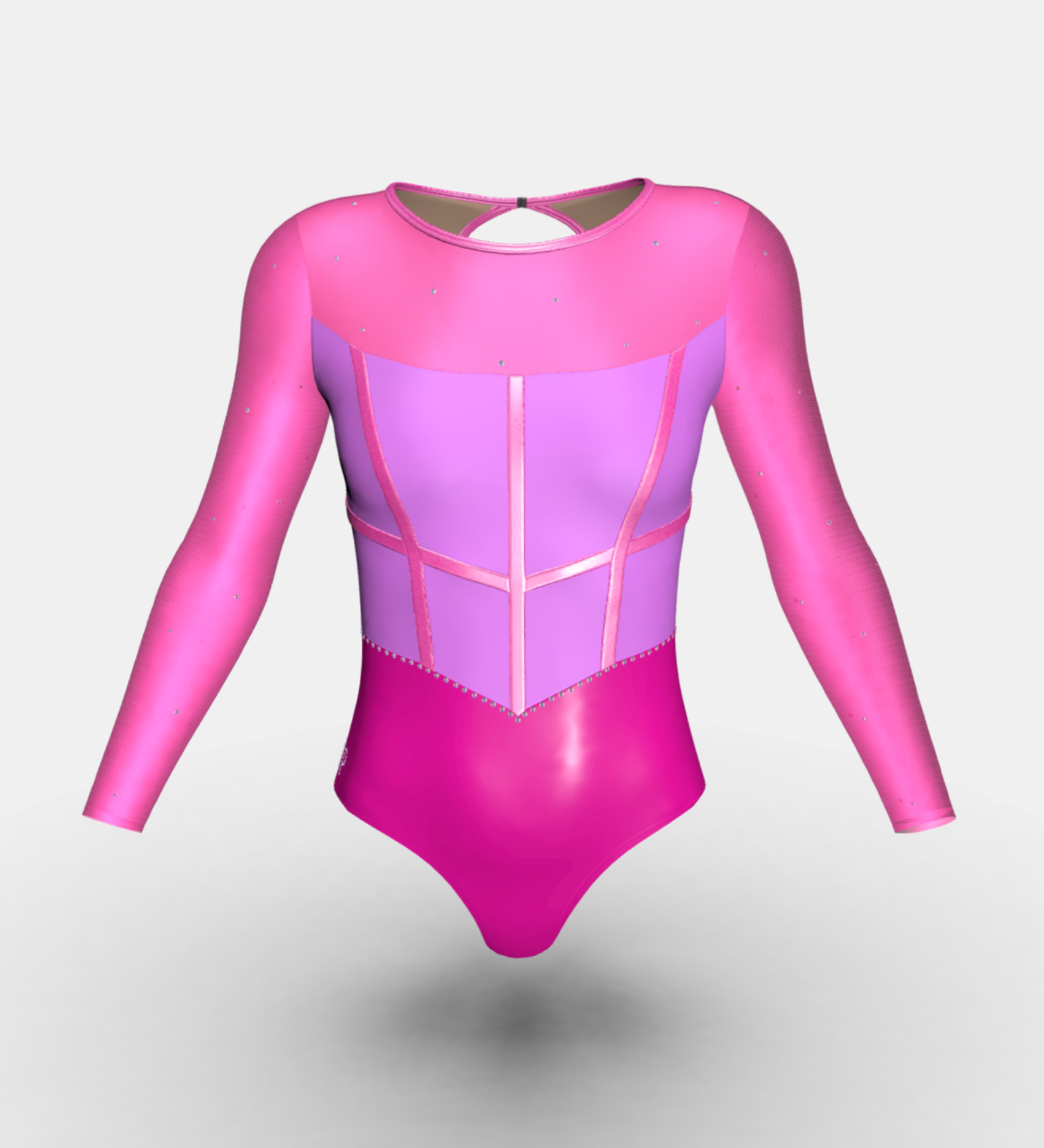 Change the fabrics, colours and crystals of this leotard using StudioSP, our 3D product designer.