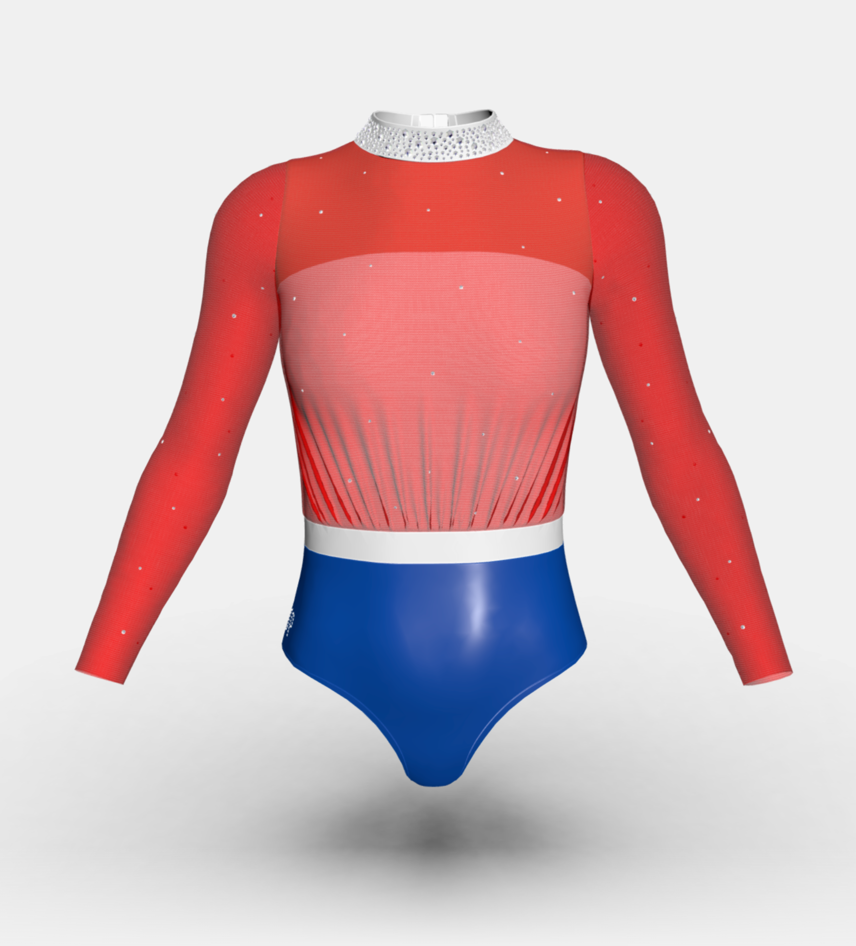 Awe-inspiring, mysterious, and fascinating. The Thea design has all the elements of a showstopping design. Featuring a gathered mesh overlay through the front with a mystique underlay and belt for a subtle sheen. Clasp at the back neck for ease. Front and back upper panels are skin lined for complete coverage. Elegant crystals adorn the neck band with a light scatter across the chest and sleeves for a subtle sparkle. For that extra touch, there is an intricate crisscross strap detail through the back. The lower body has been crafted from a wetlook fabrication only available in select colors.